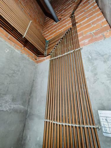 Bajar techos e instalar conductos, hacer 5 salidas a las diferentes habitaciones, es un tercer piso, la máquina se colocaría en la terraza y bajaríamos un piso más la terraza, la máquina de la vivienda se colocaría en el techo del cuarto de baño que es de aluminio y que posiblemente tengamos que colocar un techo nuevo.