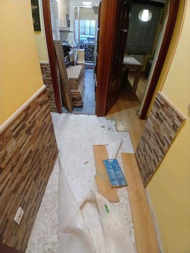 Por favor incluir el rodapie en la instalacion, y el corte de las puertas de madera. Ademas la idea es ponerlo encima del suelo actual, salvo el salon que tiene suelo laminado antiguo aprox 4m2