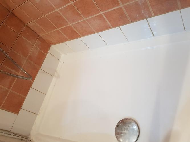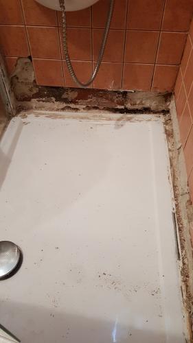 Posiblemente añadir canalones a todo el tejado y a una terraza que esta por debajo. Corregir una gotera que esta en otra parte del tejado seguramente la entrada de agua sea por la chimenea.
