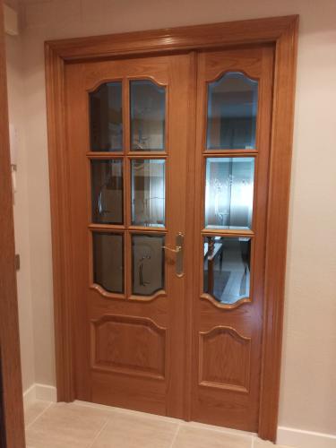 Son un total de: 8 puertas, 1 puerta con cristal sencilla, 1 puerta doble de entrada comedor con cristal. Puertas dobles armario recibidor, 1 puerta despensa Revestimiento puerta calle.