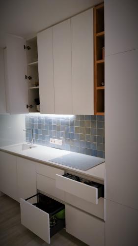 La casa tiene unos 70 mtrs y la cocina y office no llevan rodapié de madera el resto si salvo las paredes de los armarios de las habitaciones que al ser blancos esa parte del rodapié es blanca.