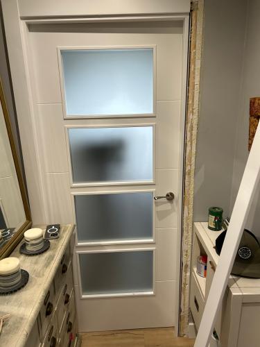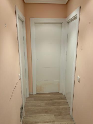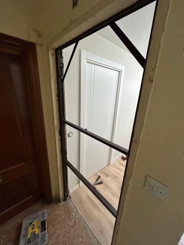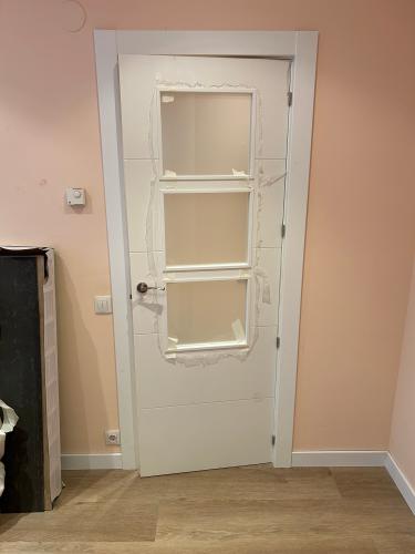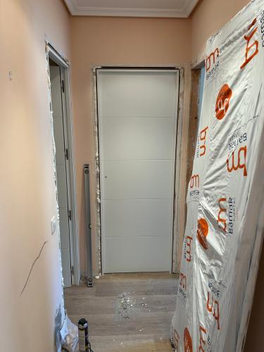 Colocación de cinco pletinas en las puertas y posible cepillado de las base. Nivelación de algunos tramos , ya fue una reparación que se hizo por el cambio de tubos de aguas blancas desde la cocina hasta en baño por rotura. La reparación es en el pasillo de la casa.