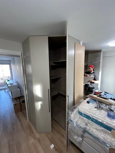 Hay que desmontar parte del mueble de la sala y retirar sofás. Hay que hacer con persona mayor en domicilio y que tiempo puede llevar hacer este trabajo y que barniz ponen un saludo adios