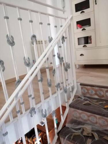 Pintura interior de casa adosada. 5 habitaciones. Pintura blanca en todos los habitáculos. Paredes y techos. Tapar los agujeros de los cuadros que había colgados.