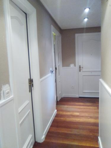 Piso para pintar, en estucado muy fino. Habitaciones: salón 28 m2 + habitación: 9 m2 + habitación: 12 m2 + pasillo 6 m2 (mitad pared) porque tiene friso madera + techos (incluido techo cocina = 9 m2. Color uniforme para toda la casa exceptuando algún paño del salón.