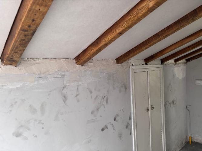 Se trata de una vivienda unifamiliar de 3 plantas.. Una habitación de la primera planta y el salón en la planta baja han sufrido daños por agua.. La idea es hacer las 2 plantas enteras porque el parquet ya estaba bastante deteriorado.. Queremos usar barniz al agua y con acabado claro