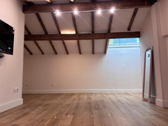 Vivienda en casco viejo de bilbao de estructura de madera y suelos en cuesta. Quitar suelo viejo, poner rastreles, nivelar el suelo y colocar suelo final vinílico. Son unos 50m2 en total. (salón, pasillo y dos dormitorios pequeños).