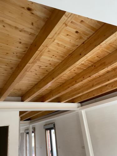 Las vigas están en el exterior sin techo que me lo traen el próximo viernes y en una terraza en alto. La altura de las vigas van de los 2.80m a 2.30m y están listas para pintar
