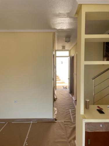 Alisar (quitando gotelé) y pintar en dos colores una vivienda de 3 dormitorios, salón (sin pasillo), en total 210m de superficie entre techos y paredes.