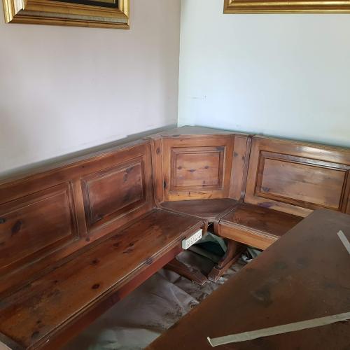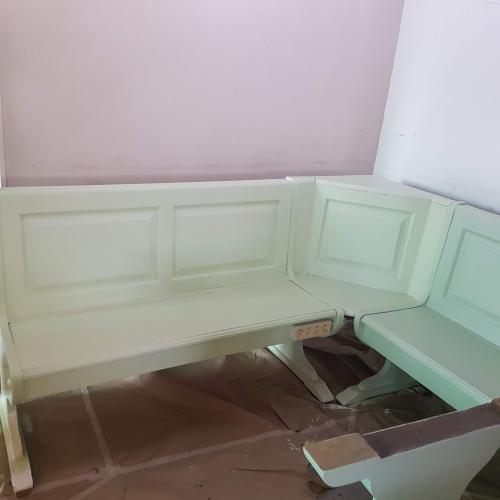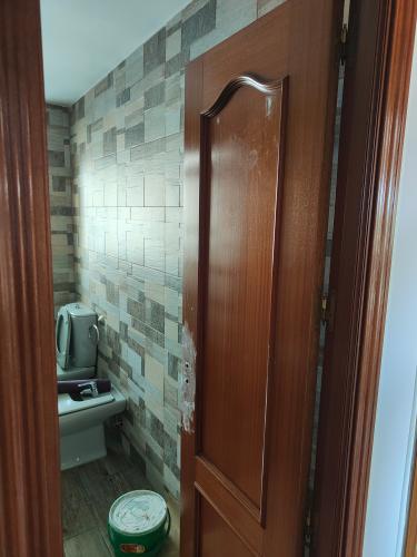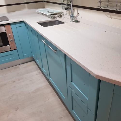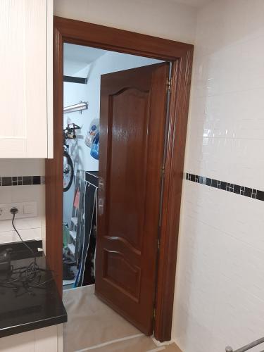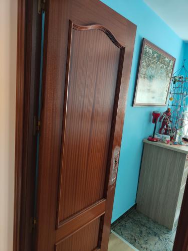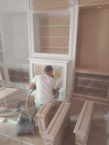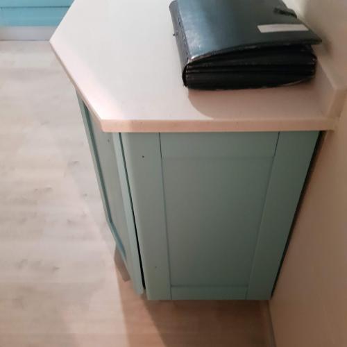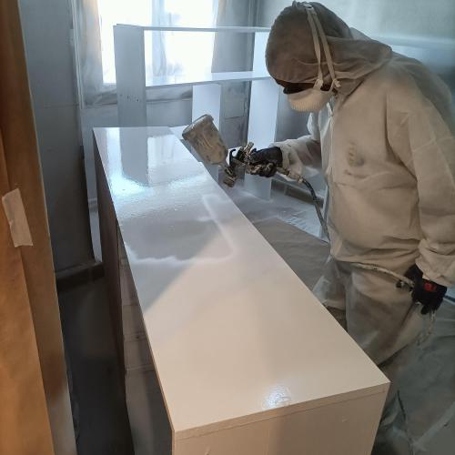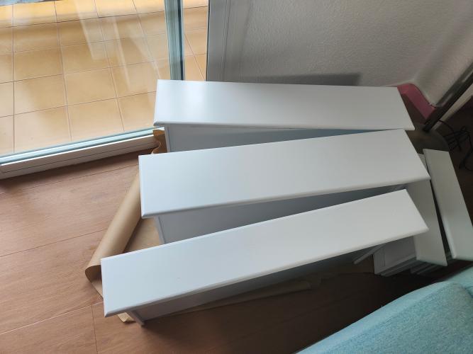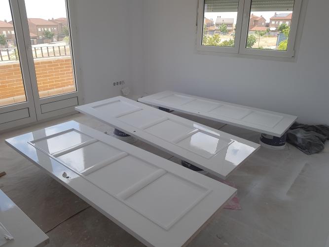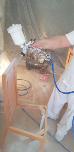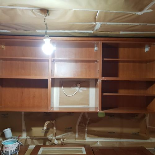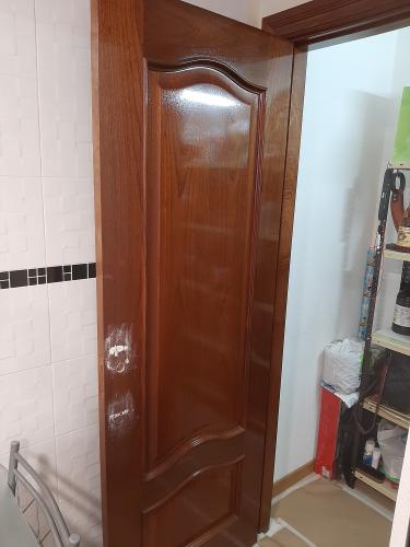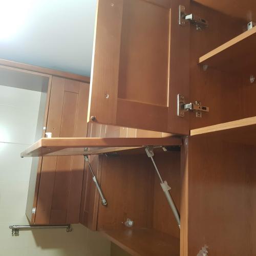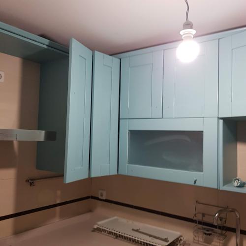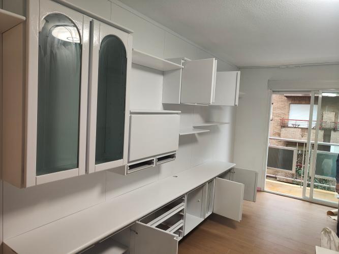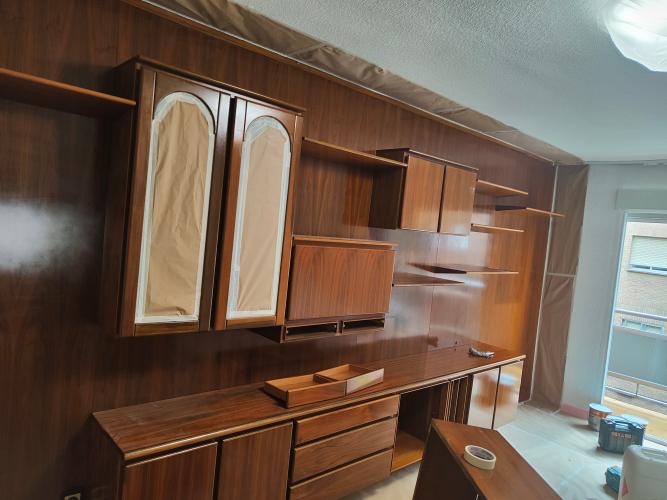 La habitación hay que alisar y pintar. Quizás haga una roza para llevar un enchufe más arriba. Respecto al frontal del armario empotrado en un armario bajo de una baño, de unos 128 cms por 40 cms de alto. Sería lijar y pintar en semi laca