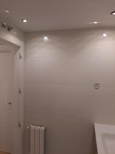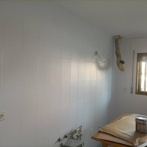 El piso tiene 3 habitaciones y dos baños, solo habría que pintar el techo de la cocina, pasillo, 1 habitación y el techo de un baño. El techo del baño, el de la cocina y el del pasillo han empezado a desprenderse, el techo del baño he intentado pintarlo yo, primero dándole imprimación pero no agarra y se desprende