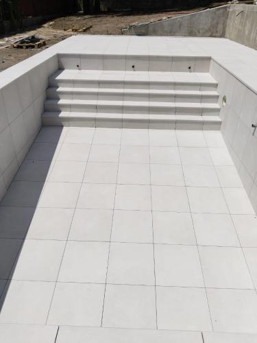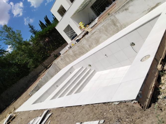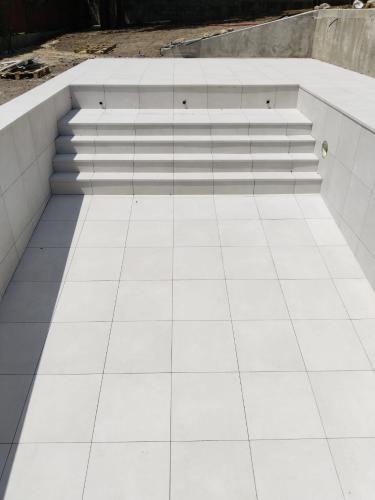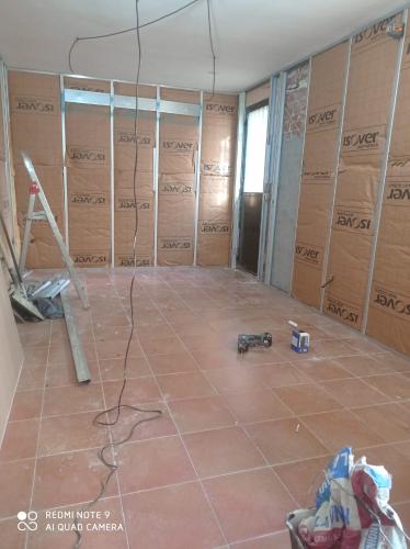Realización de solera de hormigón con mallazo de 15x15x6 como armado. Instalación de brea de betún impermeabilizante y posterior instalación de tela asfáltica y suelo de cerámica con junta en terraza de 25 m²