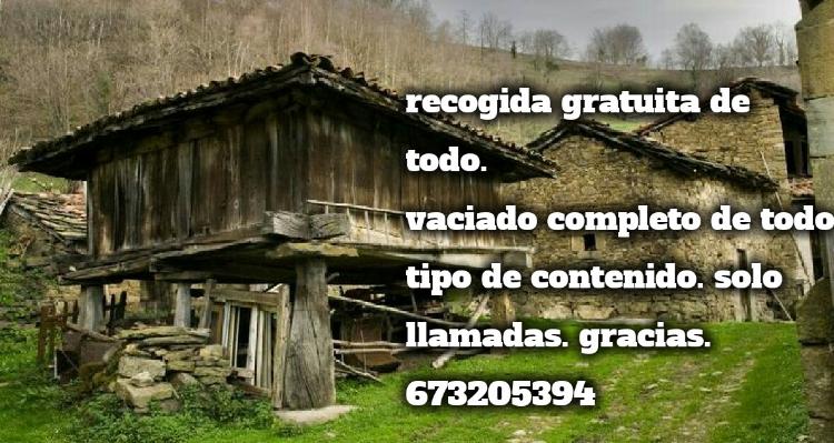Hay para recoge una nevera, 2 muebles de entrada uno con espejo, un sofá, y 3 habitaciones (camas, armarios, mesitas...) algunos de los muebles están en perfecto estado, otros se pueden reparar y pueden ser aprovechados