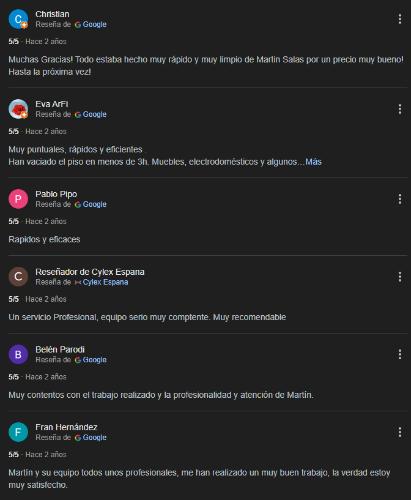 Valoraciones de clientes sobre Transportista para recogida de muebles y electrodomésticos