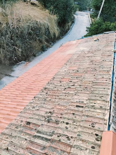 El tejado a cedido habría que reforzar las vigas de madera retejar y limpia r todo el tejado y rematar por todo el perímetro