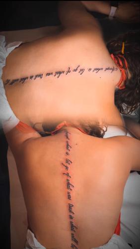 Somos dos amigas que queremos hacernos un tatuaje, una frase partida en dos trozos, ella llevará uno y yo el otro. Nos conocemos desde hace unos 28 años y aunque vivimos en ciudades diferentes, no pasa el tiempo entre nosotras. Este tatuaje sería un bonito detalle Referente a nuestra amistad. Gracias