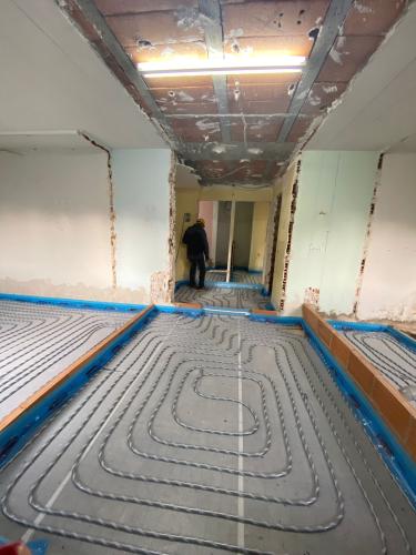 Estariamos interesados en conocer un presupuesto aproximado para la transformacion de un local en bruto de 135m² (con salida de humos y bajantes definidas) en dos viviendas (incluyendo el cambio de fachada)